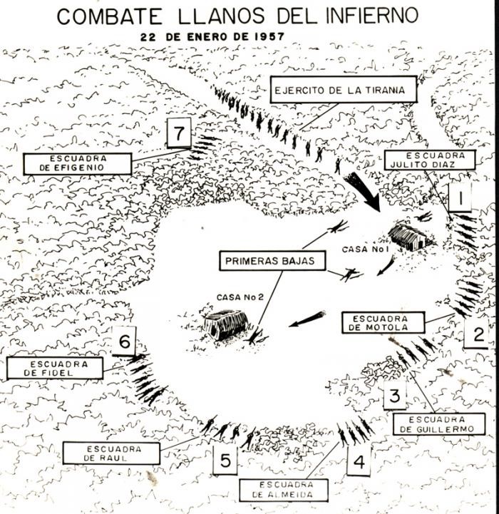 El combate de Llanos del Infierno da comienzo a la segunda etapa de la guerrilla con la creación de la Columna Uno, que abarca desde el 22 de enero de 1957 hasta la acción combativa del Uvero, el 28 de mayo de 1957.
