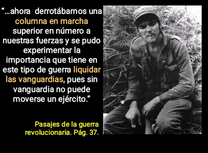 Al respecto, el Che diría en Pasajes de la guerra revolucionaria: “[…] ahora derrotábamos una columna en marcha superior en número a nuestras fuerzas y se pudo experimentar la importancia que tiene en este tipo de guerra liquidar las vanguardias, pues sin vanguardia no puede moverse un ejército”.