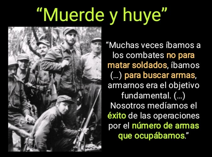 El 20 de enero de 1981, en Guisa, Fidel también emitió su opinión: “Muchas veces íbamos a los combates no para matar soldados, íbamos […] para buscar armas, armarnos era el objetivo fundamental. […] Nosotros medíamos el éxito de las operaciones por el número de armas que ocupábamos”.