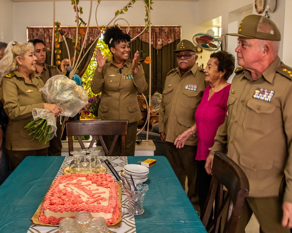 La general de brigada (r), y Heroína de la República de Cuba, Delsa Esther Puebla Viltre, la conocidísima combatiente de la Sierra Maestra, Teté, está de cumpleaños 85. Por ese motivo se llegaron hasta su casa con un hermoso ramo de flores, integrantes de las FAR, a través de jefes, oficiales y cadetes del Instituto Técnico Militar José Martí, Orden Antonio Maceo, Orden Carlos J. Finlay. En el homenaje estuvieron representantes de la Asociación de Combatientes de la Revolución Cubana y la Oficina Nacional de Atención a Combatientes.