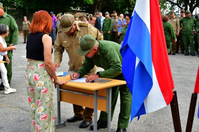 El acto político celebrado en el Ministerio de las Fuerzas Armadas Revolucionarias (FAR) contó con la presencia del miembro del Buró Político y Ministro de las FAR, general de cuerpo de ejército Álvaro López Miera, acompañado de jefes, oficiales, soldados y trabajadores civiles. Allí, cada firma realizada representó un voto de confianza por la soberanía y un rechazo a cualquier intento de injerencia.